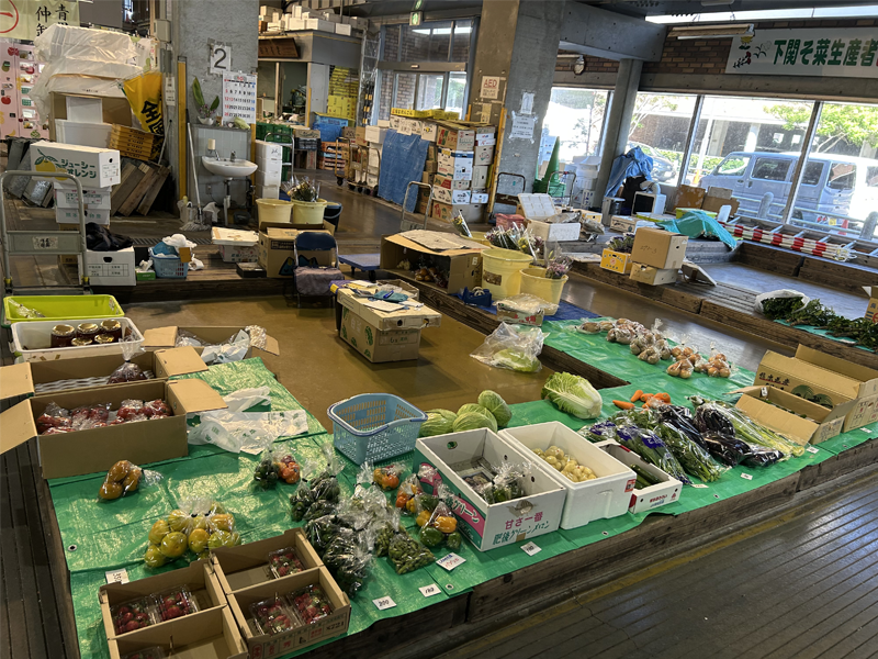 花と野菜、心を添える”地元の生産者”コーナー。生花市場や地元で生産した花や野菜などを販売しています。組合員が交替で出ていますので日によって、内容が異なりますが、各自が自慢の品々を揃えていますのでぜひ、お立ち寄りください。
