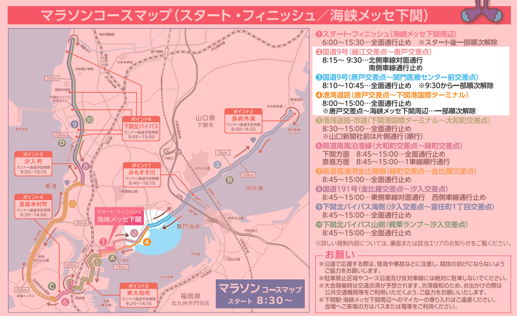 下関海響マラソン2025に伴う、交通規制