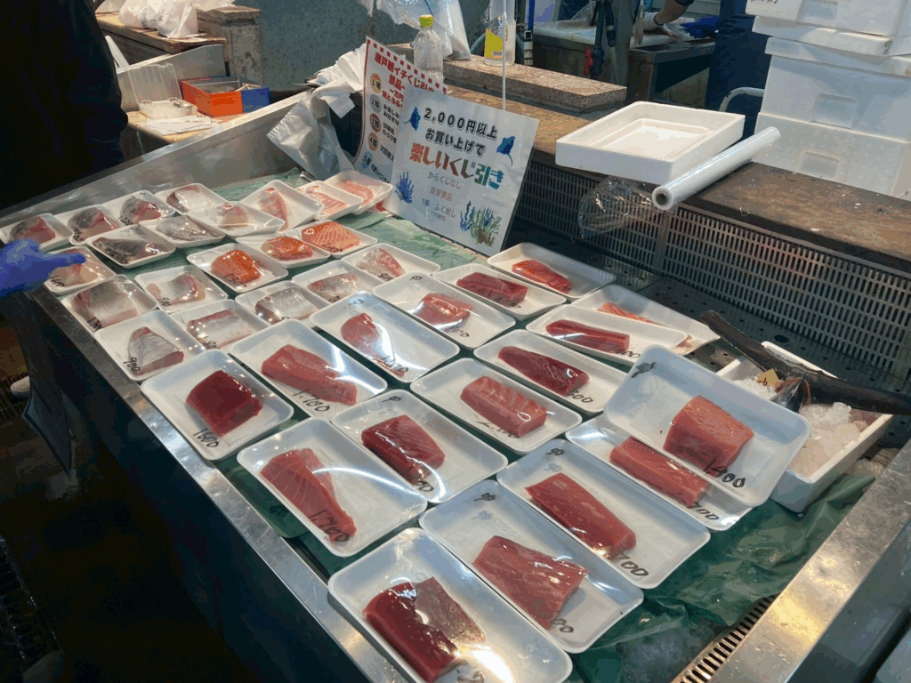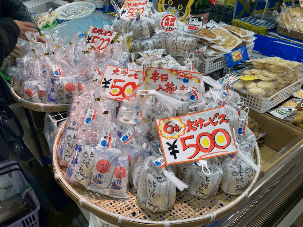 全てをご紹介できませんが、鮮魚やかまぼこ、今でしたら数の子、乾物、干物と市場価格ではなく卸価格で販売しています。