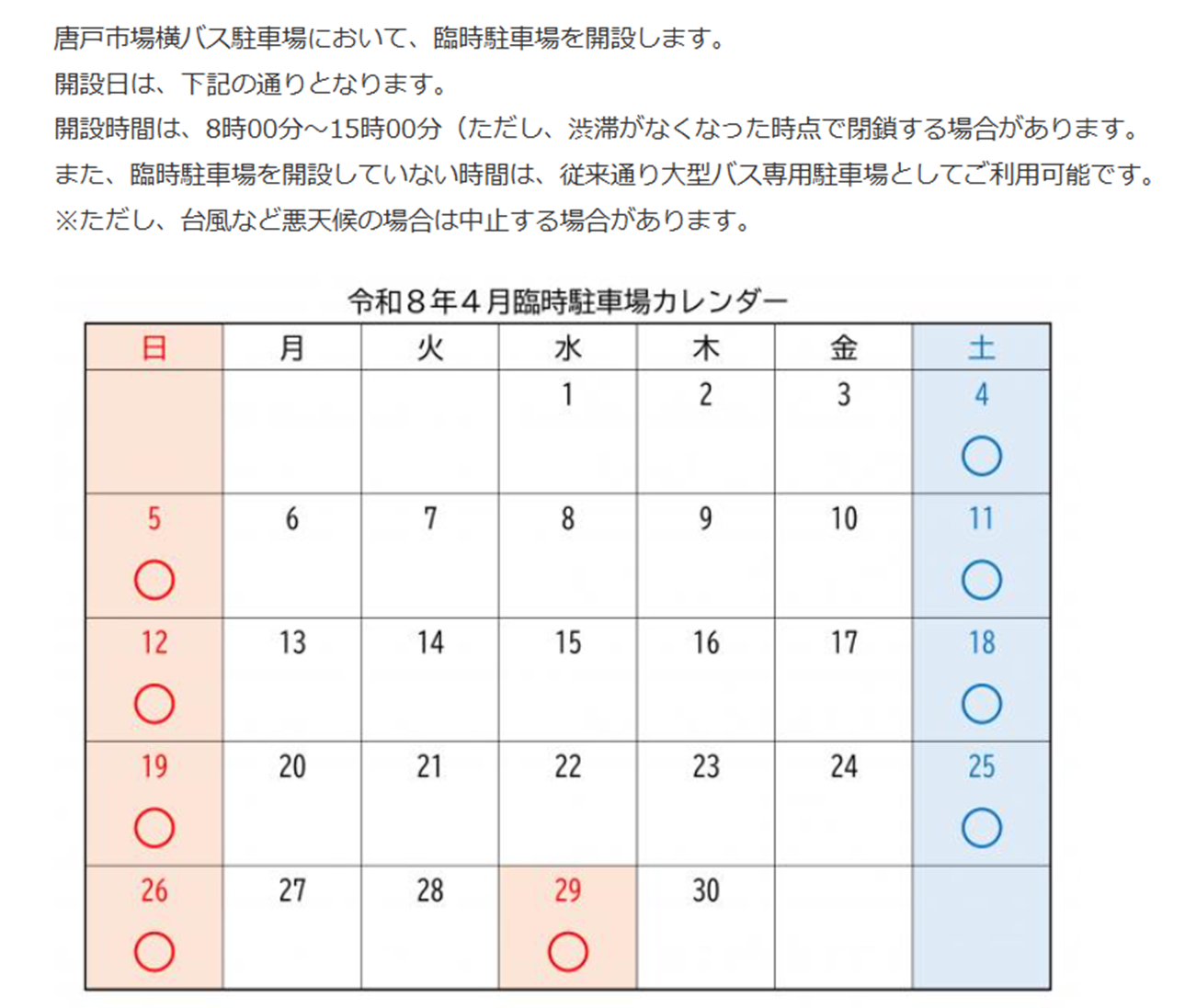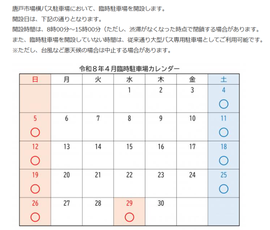 ホーム > 唐戸市場からのお知らせ > 2026年度 唐戸市場横バス駐車場における臨時駐車場について