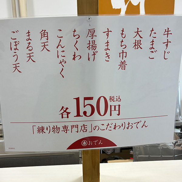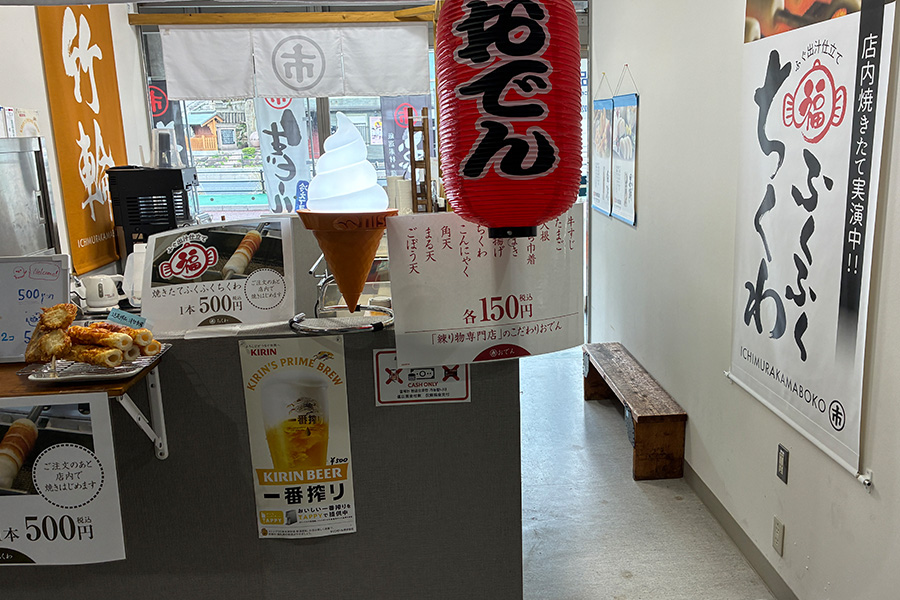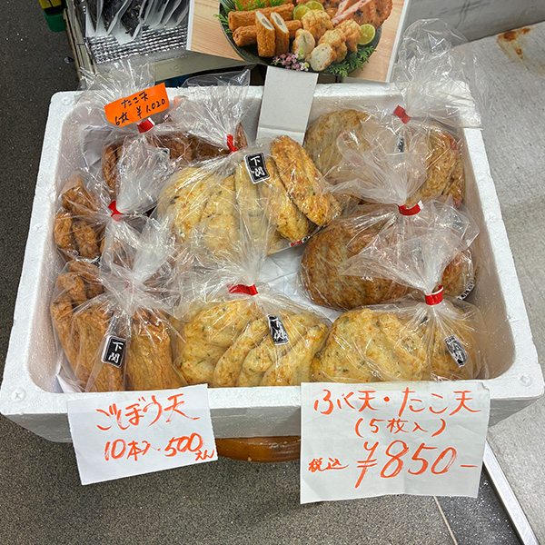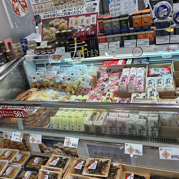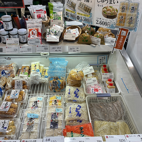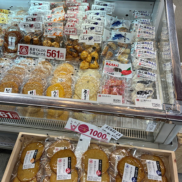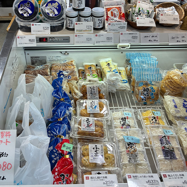 蒲鉾、竹輪、天プラ、山陰産のうに、きざみわかめ、ひじき、珍味等