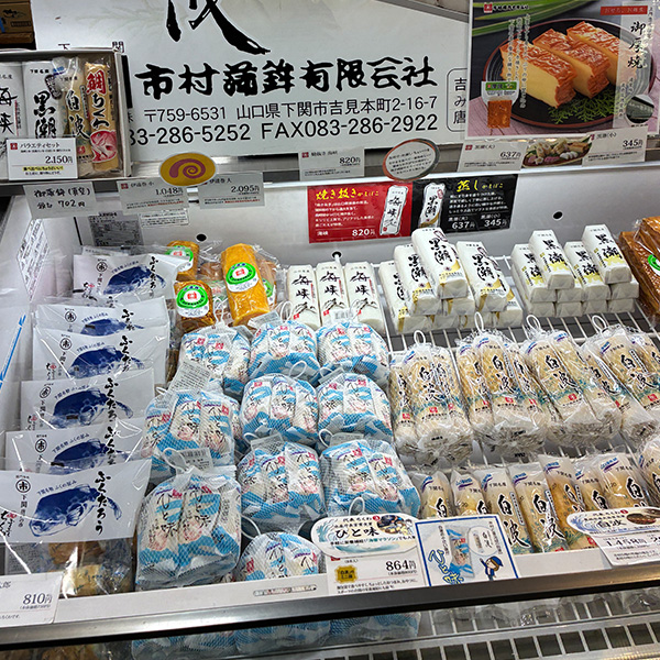 | 会社名 | 市村蒲鉾 有限会社 〒759-6531 山口県下関市吉見本町2-16-7 |