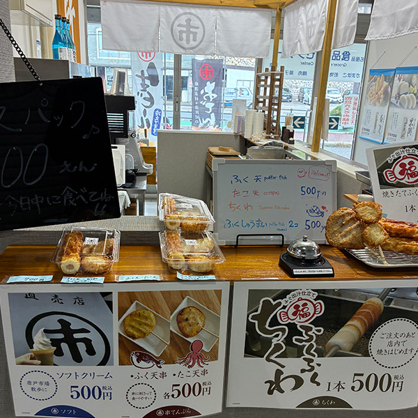 市村蒲鉾有限会社 唐戸市場店はこの地で創業、昭和13年より蒲鉾、竹輪、天ぷらを造り続けて70年余りの老舗。全国に発送しております。(ヤマト運輸便外使用) 近年、老舗の技術を活かし海鮮焼売を始めました。(ふく、ウニ、ハモ、イカ)
