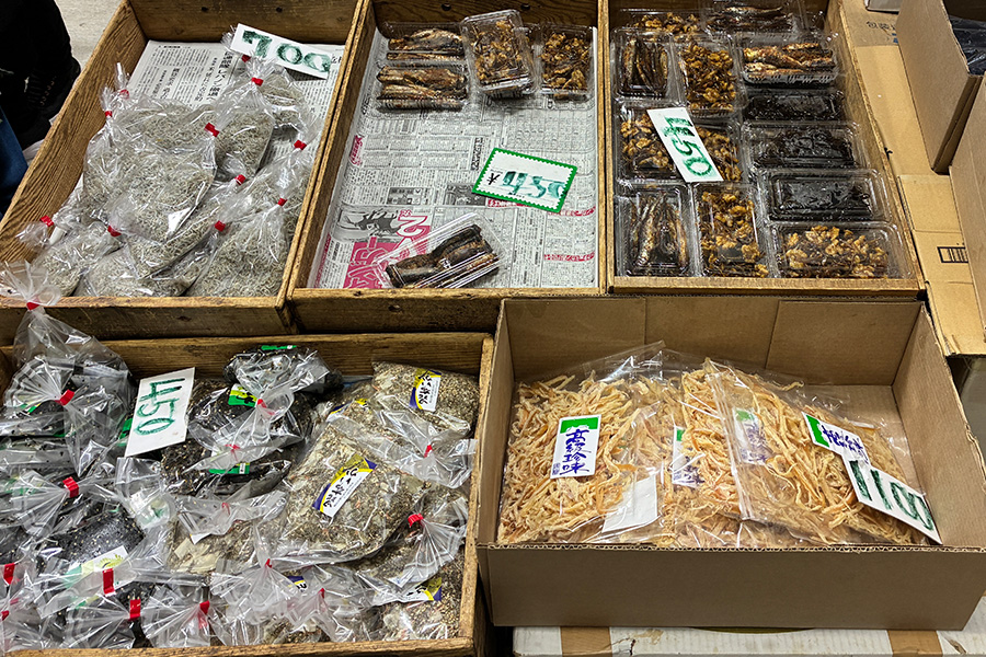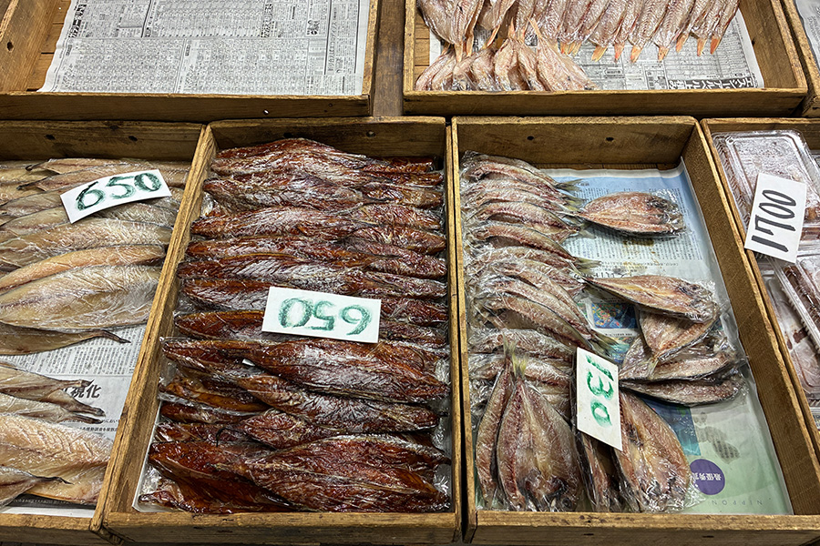 干物(サバ、かさご、ササガレイ、カマス、あじ、鮭他)、ちりめん他